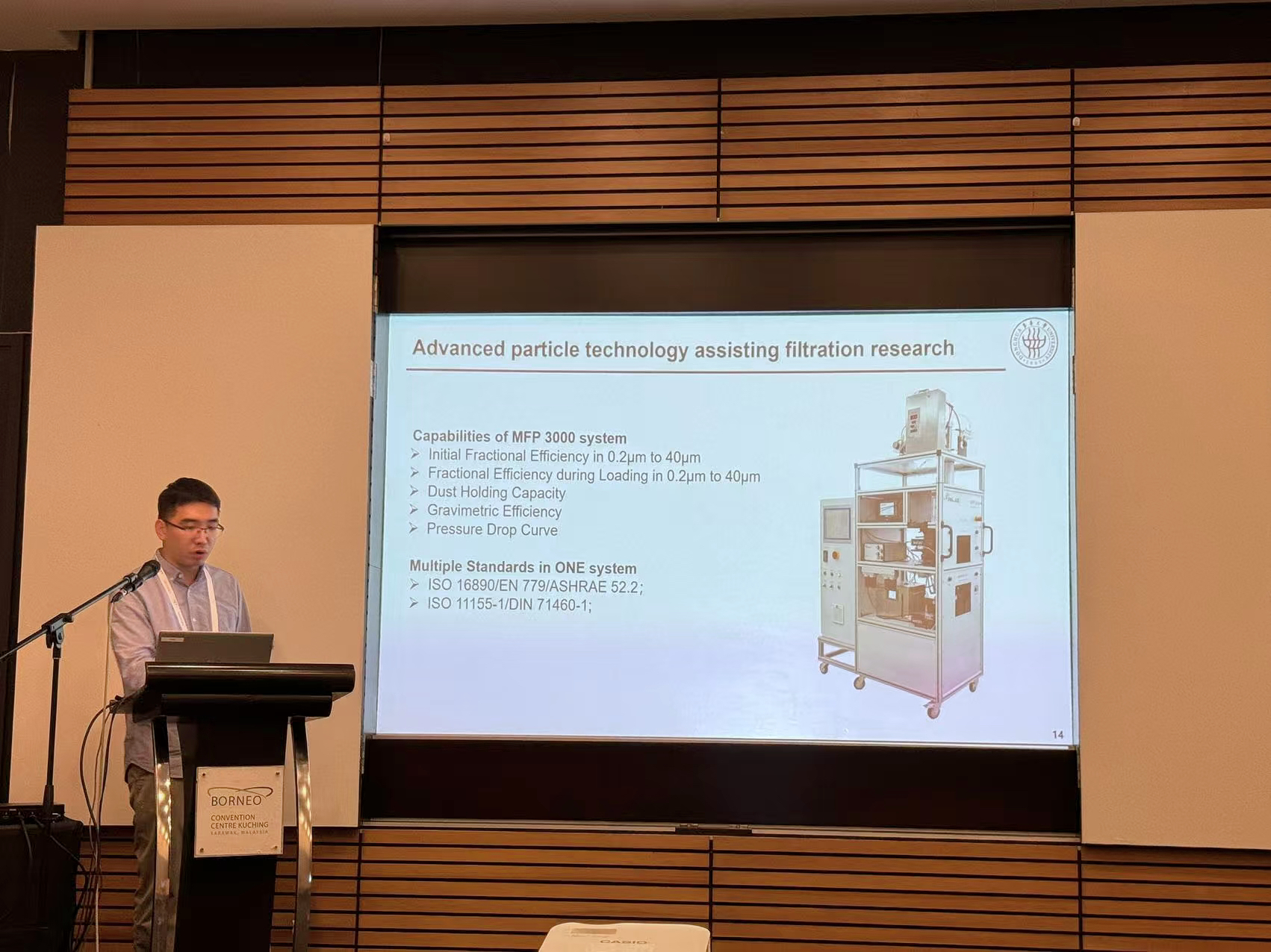 此外,東華大學紡織學院研究團隊借助了Palas® MFP 3000濾材過濾性能測試台獲得大量可靠的粉塵加載數據,深入探究了粉塵顆粒與纖維基濾材的碰撞行為並建立了粉塵過濾的高精度數值計算模型。這些研究成果在大會上也獲得了口頭演講的機會,再次展現了Palas®在科研領域的實際應用和貢獻,及其在氣膠研究中的潛力和可能性。