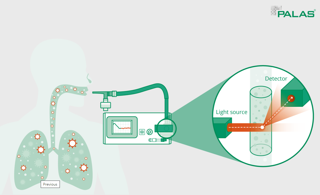 為了測量顆粒粒徑大小和濃度,Resp-Aer-Meter 與 Fidas® 系統的白光 LED 傳感器配合使用,該傳感器已在環境測量中得到證明。即使是 145 nm 的最小顆粒也會被單獨記錄,並在線檢測它們的粒徑大小和數量。